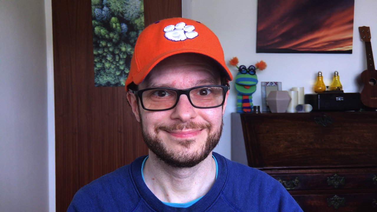 It’s pretty good. Nice and sharp and good colours and lighting (it helps that my desk is opposite a big window!). However, it’s also quite a wide shot. You can see a good bit of a picture on the left and the top of my mic’s pop filter at the bottom (near my arm).